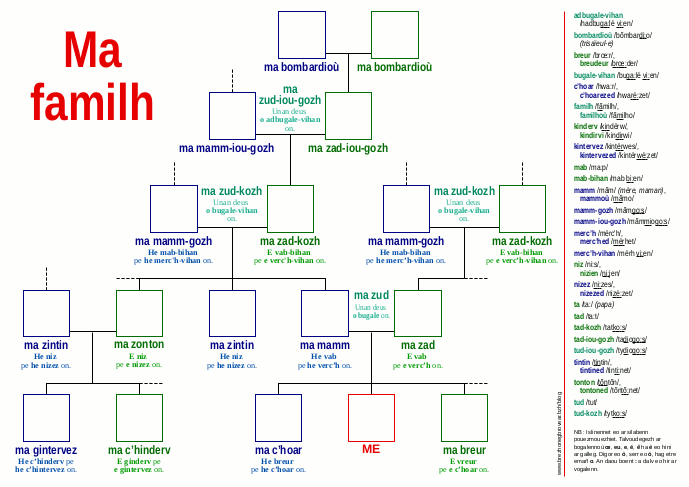 Ur skritell evit deskiñ anvioù izili ar familh hag o distagadur e brezhoneg Treger. Plas zo e-barzh ar wezenn da desinañ pennoù tud ar familh !