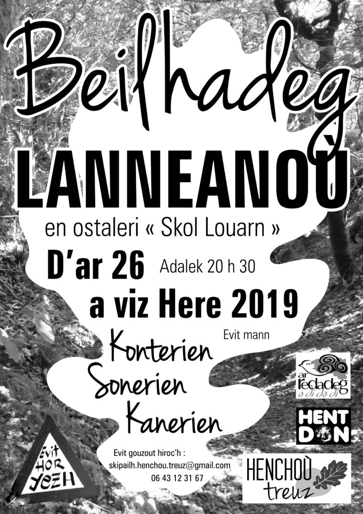 Disadorn adalek 21h00 en ostaleri Skol Louarn en Lanneanoù. Digor d’an holl hag evit mann. Titouroù : hentdon@gmail.com / 06 43 12 31 67